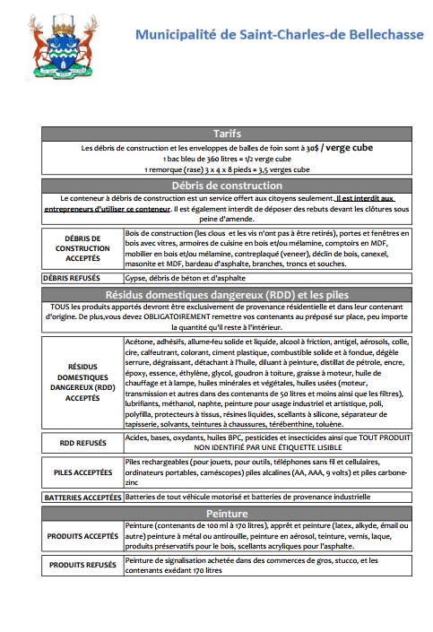 La municipalité de Saint-Charles-de-Bellechasse veille au développement harmonieux de son territoire et au respect de la réglementation en place. Afin de faciliter les demandes de permis et certificats, la Municipalité
